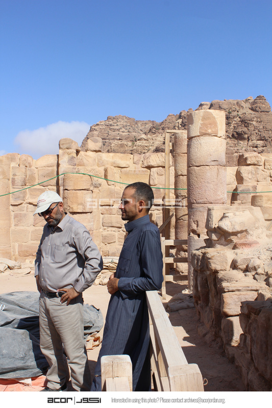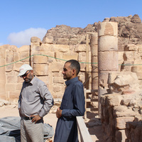 - Jordan. Petra, Temple of the Winged Lions, Jehad Haron and Ahmad Mowasa in front of altar