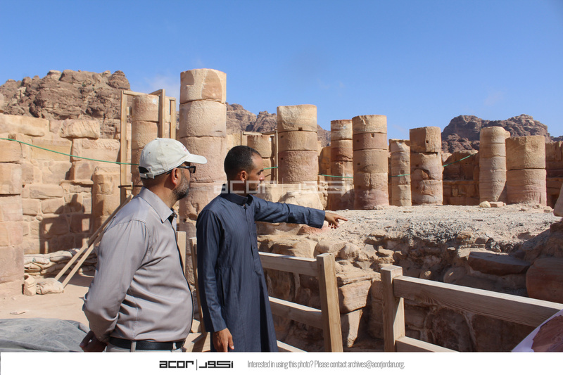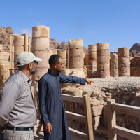 - Jordan. Petra, Temple of the Winged Lions, Jehad Haron and Ahmad Mowasa in front of altar