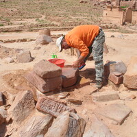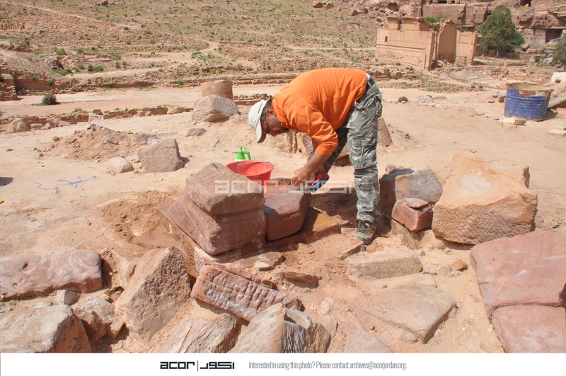 Jordan. Petra, Temple of the Winged Lions, team member cleaning stones