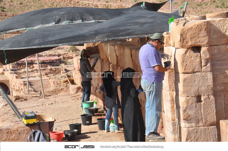 - Jordan. Petra, Temple of the Winged Lions, adding mortar in the cracks between stones, pictured: Franco Sciorilli and trainees