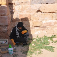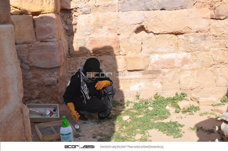 - Jordan. Petra, Temple of the Winged Lions, team member in conservation training, bottle likely contains a diluted herbicide that kills weeds