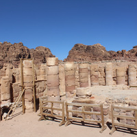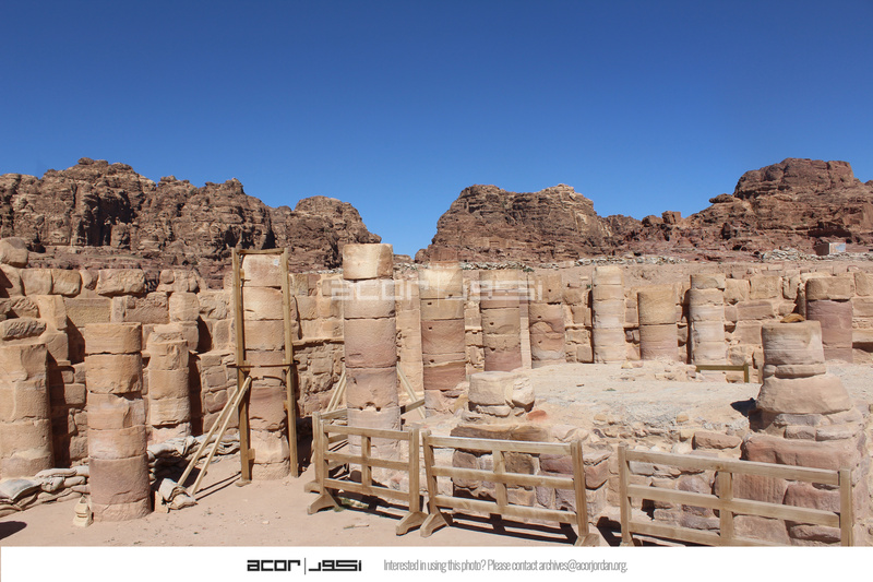 Jordan. Petra, Temple of the Winged Lions, cella, altar before conservation, wooden barriers