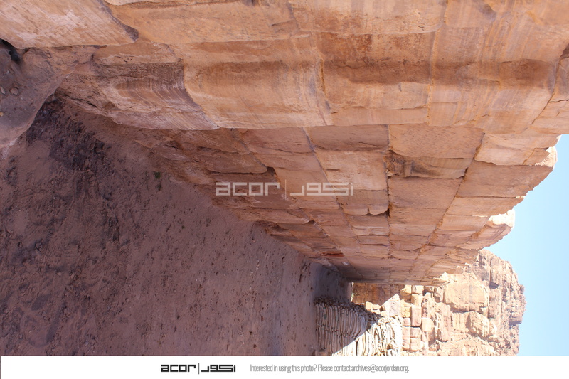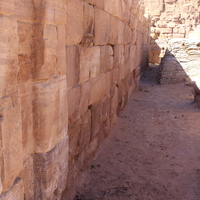 - Jordan. Petra, Temple of the Winged Lions, north wall of TWL, facing west, sandbags used to keep corridor wall from collapsing