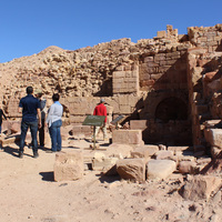 - Jordan. Petra, Temple of the Winged Lions, southwest quadrant, facing north, with team members