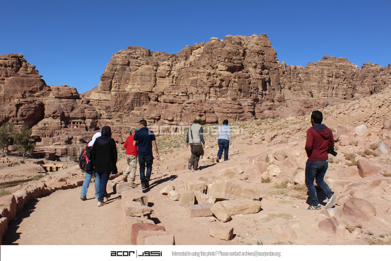 Jordan. Petra, Temple of the Winged Lions, pathway in front of temple, facing west, pictured: team members, USAID SCHEP team member