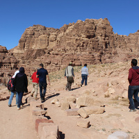 - Jordan. Petra, Temple of the Winged Lions, pathway in front of temple, facing west, pictured: team members, USAID SCHEP team member