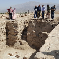 - Jordan. Ghawr as Safi, showing the US Ambassador the Byzantine church at Khirbet Sheik Isa. The cross on the floor is the bottom of the cruciform baptistry in the floor