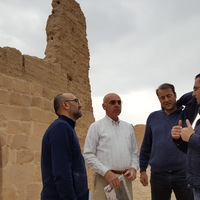- Jordan. Ghawr as Safi, SCHEP team and Konstantinos Politis at entrance to sugar factory (Masna’ as-Sukkar)