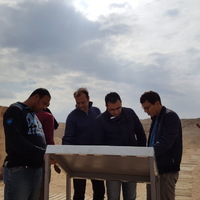 Jordan. Ghawr as Safi, SCHEP team looking at newly installed panels at sugar factory (Masna’ as-Sukkar)