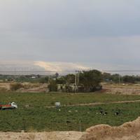 Jordan. Ghawr as Safi, photo taken from sugar factory (Masna’ as-Sukkar) archaeological site, in distance is Jebel Usdum (Mount Sodom) located across the Dead Sea to the west of Ghawr as Safi