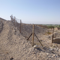 Jordan. Ghawr as Safi, fence, excavation to divert water erosion above the sugar factory (Masna’ as-Sukkar) archaeological site