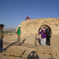 Jordan. Ghawr as Safi, visitors at sugar factory (Masna’ as-Sukkar) archaeological site