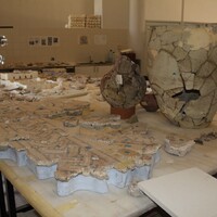 Jordan. Ghawr as Safi, Museum at the Lowest Place on Earth (MuLPE), conservation lab which shows mosaic pavements from Lot's Church and Islamic-period pots