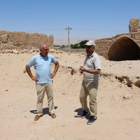 Jordan. Ghawr as Safi, view of pressing rooms at sugar factory (Masna’ as-Sukkar) archaeological site, pictured: Konstantinos Politis with Jehad Haron