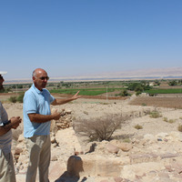 Jordan. Ghawr as Safi, Konstantinos Politis with Jehad Haron at sugar factory (Masna’ as-Sukkar) archaeological site