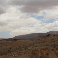 Jordan. Ghawr as Safi, general view from sugar factory (Masna’ as-Sukkar) archaeological site, views to the west, mountains of the eastern plateau above Wadi al Hasa
