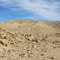 Jordan. Wadi Araba, Bir Madhkur, the southern side of Qasr Umm Rattam, Al-Sharat mountains in the background
