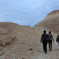 Jordan. Wadi Araba, Bir Madhkur, visitors walking on ad-Dlayi path, ancient incense route
