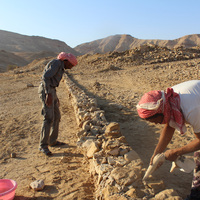 Jordan. Wadi Araba, Bir Madhkur, local workers build border line between Khirbat Bir Madhkur and the surrounding areas
