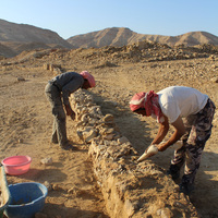 Jordan. Wadi Araba, Bir Madhkur, local workers build border line between Khirbat Bir Madhkur and the surrounding areas