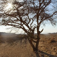 Jordan. Wadi Araba, Bir Madhkur, seyal tree alongside the ad-Dlayi path on the ancient incense route