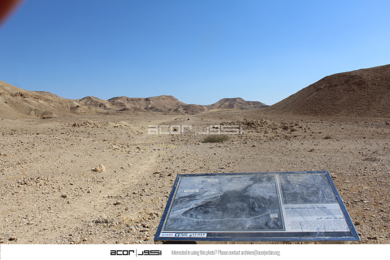 Jordan. Wadi Araba, Bir Madhkur, interpretive panel along the ad-Dlayi path on the ancient incense route