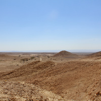Jordan. Wadi Araba, Bir Madhkur, view to the tourist cabins and the neighboring ountains from the police station