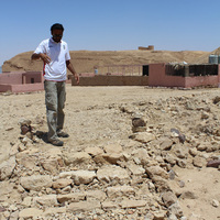 Jordan. Wadi Araba, Bir Madhkur, Site Steward Mohammad Saedeen on the border line between Khirbat Bir Madhkur and modern Islamic cemeteries
