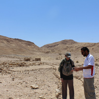 Jordan. Wadi Araba, Bir Madhkur, the beginning of ad-Dlayi path, Site Steward Mohammad Saedeen and Maria Trogolo from USAID SCHEP