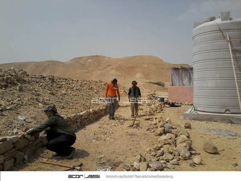 Jordan. Wadi Araba, Bir Madhkur, local workers conducting restoration work at Khirbat Bir Madhkur