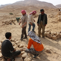 Jordan. Wadi Araba, Bir Madhkur, local workers bulid border line between Khirbat Bir Madhkur and the surrounding areas