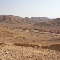 Jordan. Wadi Araba, Bir Madhkur, general view of tourist cabins from police station, US Ambassador