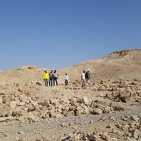 Jordan. Wadi Araba, Bir Madhkur, ACOR team members and US Ambassador at eastern part of Khirbat Bir Madhkur