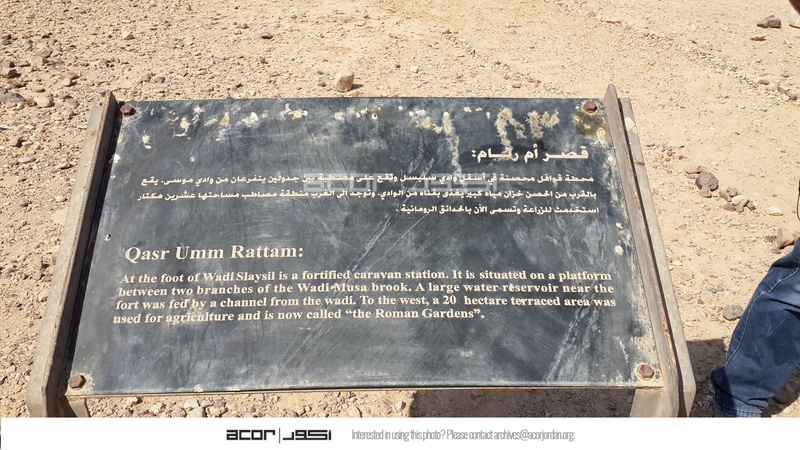 Jordan. Wadi Araba, Bir Madhkur, interpretive sign, Qasr Umm Rattam