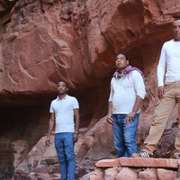 Jordan. Wadi Rum, SCHEP site stewards at entry of canyon
