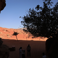 Jordan. Wadi Rum, Khazali canyon exit, trees, SCHEP site stewards