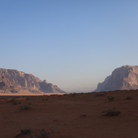 Jordan. Wadi Rum, general view of desert with mountains in background