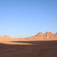 Jordan. Wadi Rum, general view of desert with mountains in background
