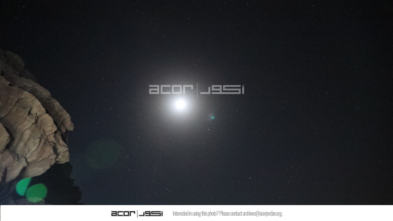 Jordan. Wadi Rum, moonlight with mountain to the side