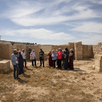 Jordan. At-Tafilah, archaeological site of Busayra, the administrative and political capital of the kingdom of Edom, students from Ammon College visit Rashidieh church
