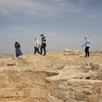 Jordan. At-Tafilah, archaeological site of Busayra, the administrative and political capital of the kingdom of Edom, students from Ammon College visit Rashidieh church