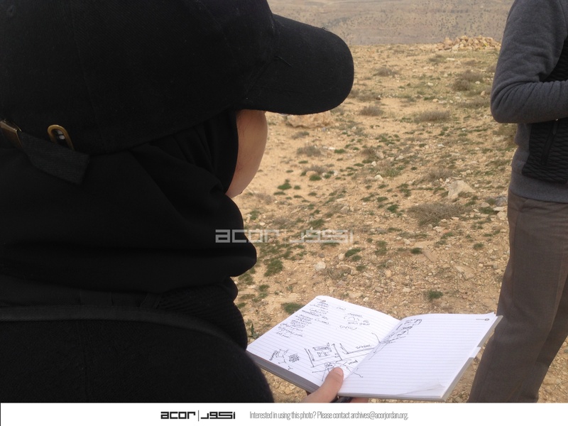Jordan. At-Tafilah, archaeological site of Busayra, the administrative and political capital of the kingdom of Edom, USAID SCHEP team members reviews plan of the site