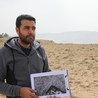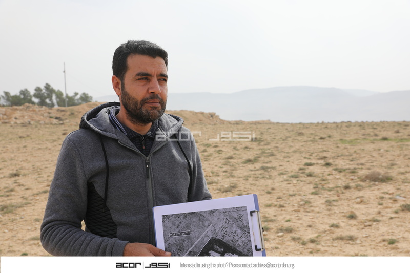Jordan. At-Tafilah, archaeological site of Busayra, surveyor Ahmed Al Marafi discussing a map of the site