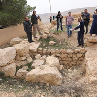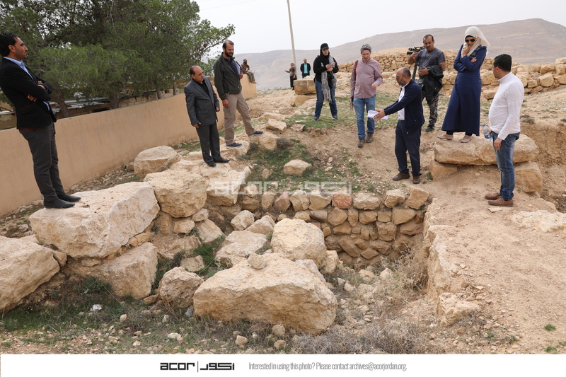 Jordan. At-Tafilah, archaeological site of Busayra, the administrative and political capital of the kingdom of Edom, Director of the Department of Antiquities Tafileh Directorate Emad Al-Thros, Jack Green of ACOR, and USAID SCHEP team members