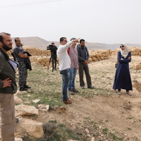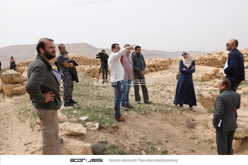 Jordan. At-Tafilah, archaeological site of Busayra, the administrative and political capital of the kingdom of Edom, Director of the Department of Antiquities Tafileh Directorate Emad Al-Thros, Jack Green of ACOR, and USAID SCHEP team members