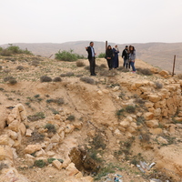 Jordan. At-Tafilah, archaeological site of Busayra, the administrative and political capital of the kingdom of Edom, site steward Ali Al Soide addresses SCHEP team members