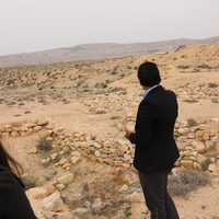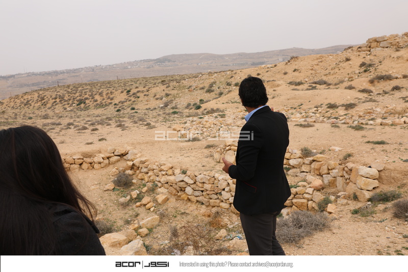 Jordan. At-Tafilah, archaeological site of Busayra, the administrative and political capital of the kingdom of Edom, site steward Ali Al Soide addresses SCHEP team members