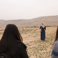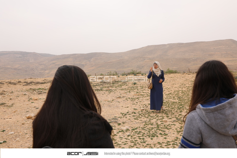 Jordan. At-Tafilah, archaeological site of Busayra, Site Steward Safa Al Rafoh speaking to SCHEP team members