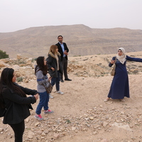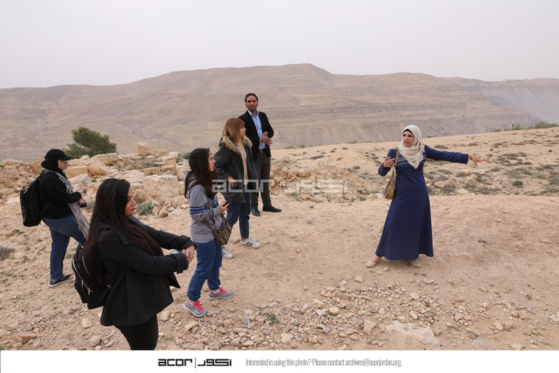 Jordan. At-Tafilah, archaeological site of Busayra, Site Steward Safa Al Rafoh speaking to SCHEP team members
