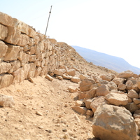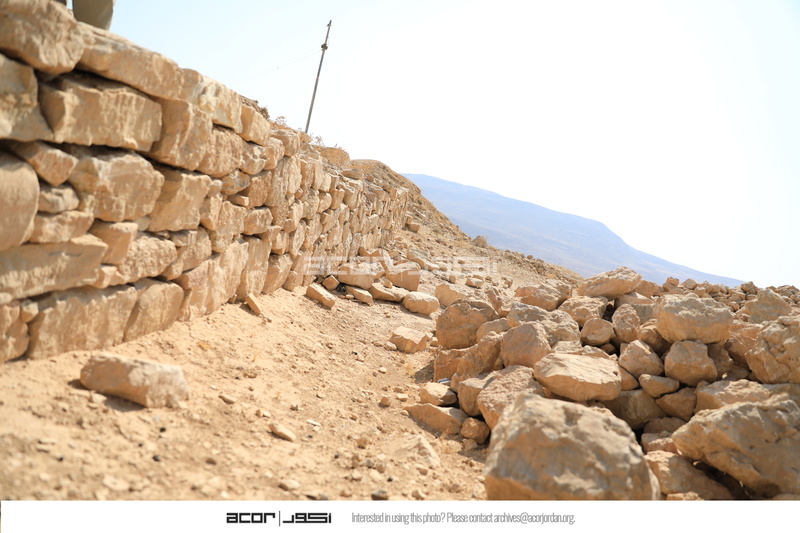 Jordan. At-Tafilah, archaeological site of Busayra, modern stone wall